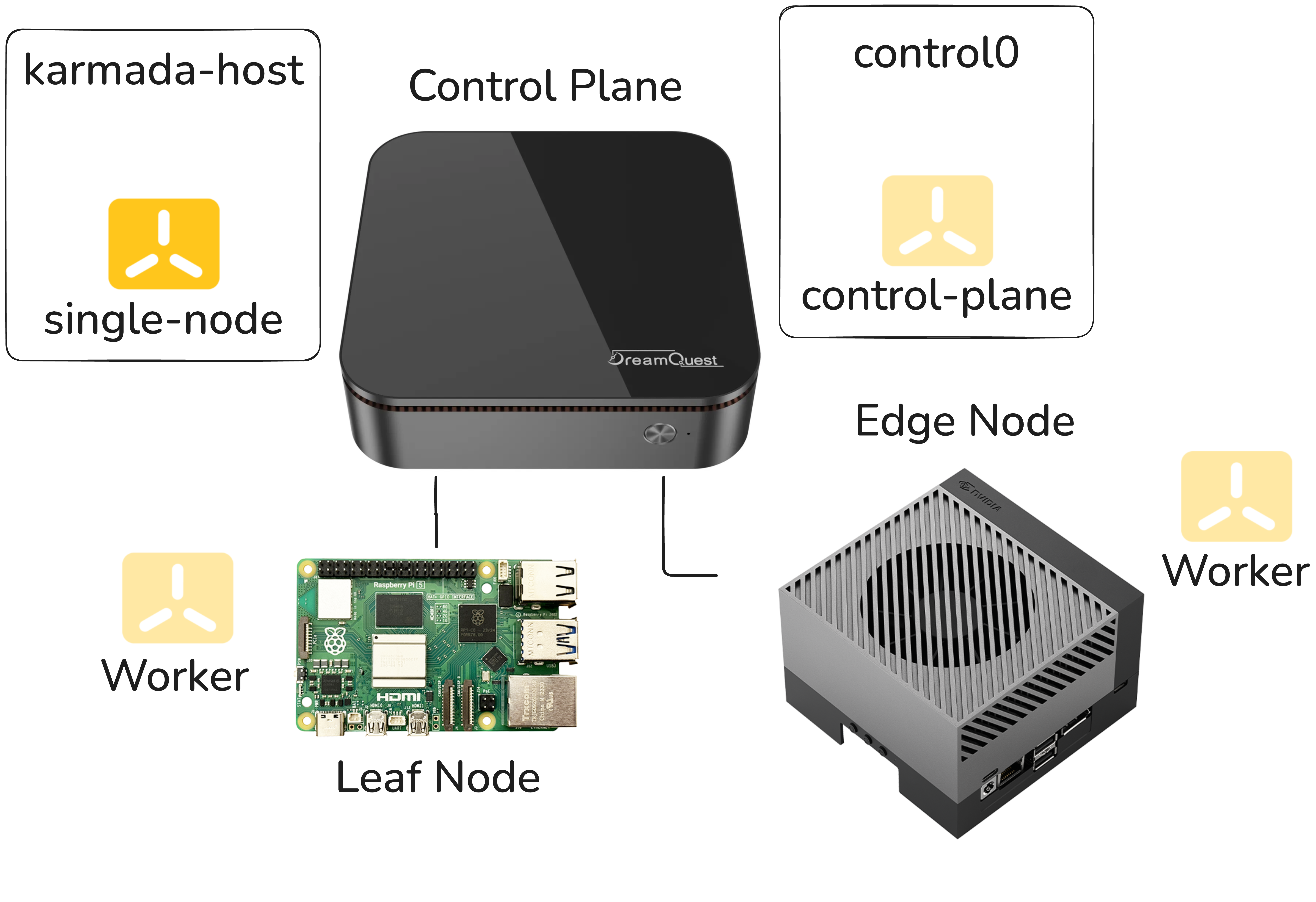 the NUC: one to act as the Karmada host and one to serve as the control plane